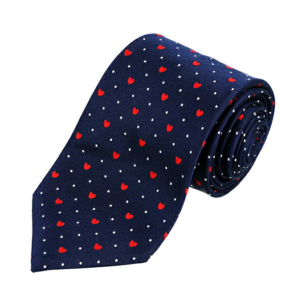 誕生日や記念日など、ここぞというギフトシーンに選びたいシルクネクタイ。落ち着いたネイビーのシルク地に、ピンドットとハートのプリントがなんともオシャレです。パーティーシーンにも映えるアイテム。