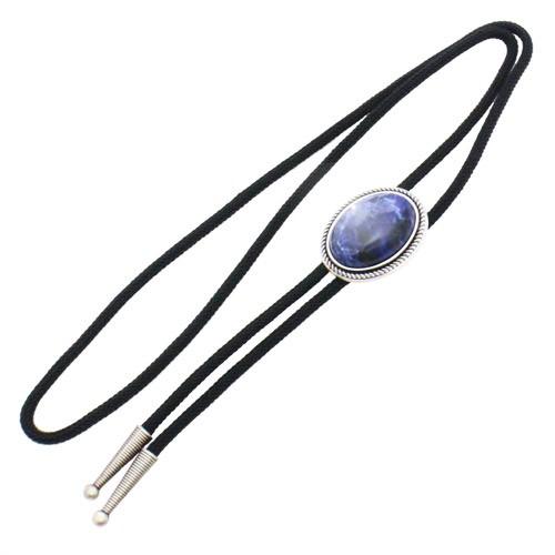 こちらは、ダークブルーのオーバルストーンが特徴的なループタイ。ビジネスやフォーマルシーンでも活躍するシックデザイン。おすすめは、長寿の象徴であるイエロートパーズです。胸元がパッと華やぎ、ファッションの幅が広がりますね。