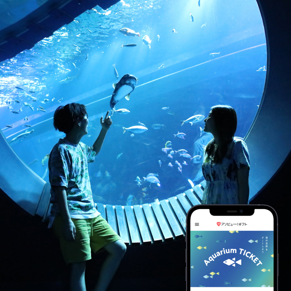1ヶ月記念日に、モノではなく一緒にできる体験を贈るのはいかがでしょう。こちらは水族館ペアチケットのギフトカタログ。大きな水槽、色とりどりの海の生物、ペンギンやアシカなど癒し系の動物たち。水族館は非日常テートを楽しむのに最適です。