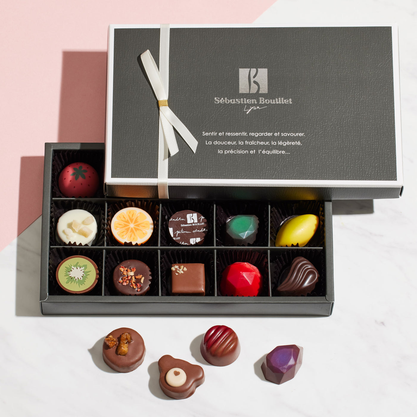 食べるのがもったいないと思ってしまいそうなおしゃれなビジュアルが魅力的。15種類それぞれ異なるフレーバーで、食べ進めるたびに新しい発見や感動が楽しめるバレンタインギフト。とっても贅沢な一箱に仕上がっています。