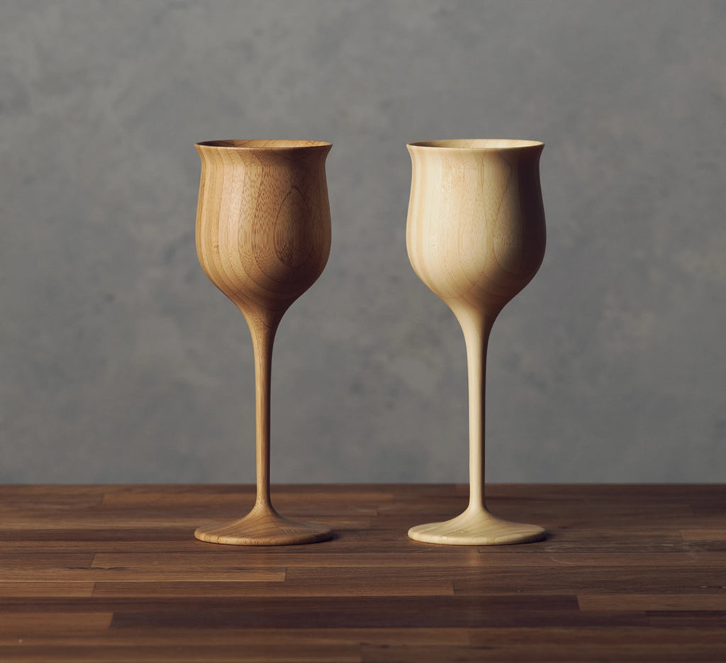 竹製ワイングラスは、テーブルに置くだけで、ナチュラルと高級感を併せ持つ大人な空間を演出。日本の職人が一つ一つ手作りしている曲線美も魅力的なアイテムです。竹本来の色であるホワイトと、竹を燻して変色させたブラウンのペアセットで妻と夫のラブラブな記念日ディナーに乾杯しましょう!