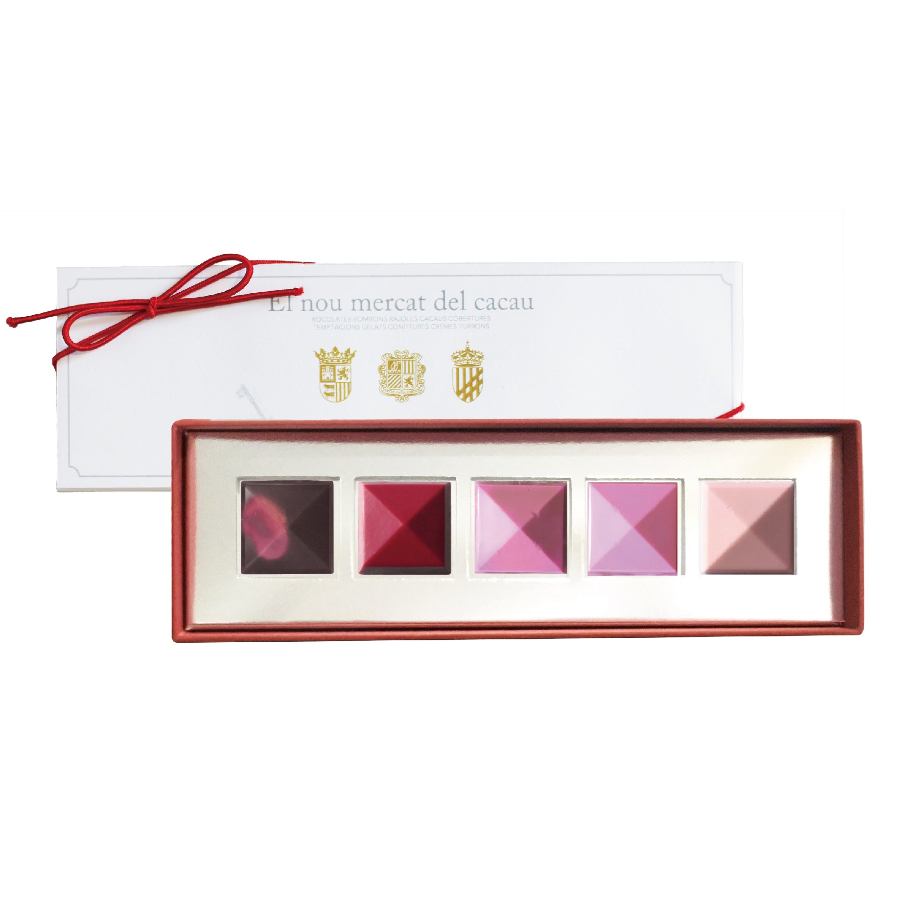 定番のボンボンショコラは、まるで宝石のようなフォルムが特徴。ストロベリー、ラズベリー、パッションフルーツの3種が入った「ロサード セレクション」は、ピンクや赤など本命チョコにぴったりなカラーになっています。