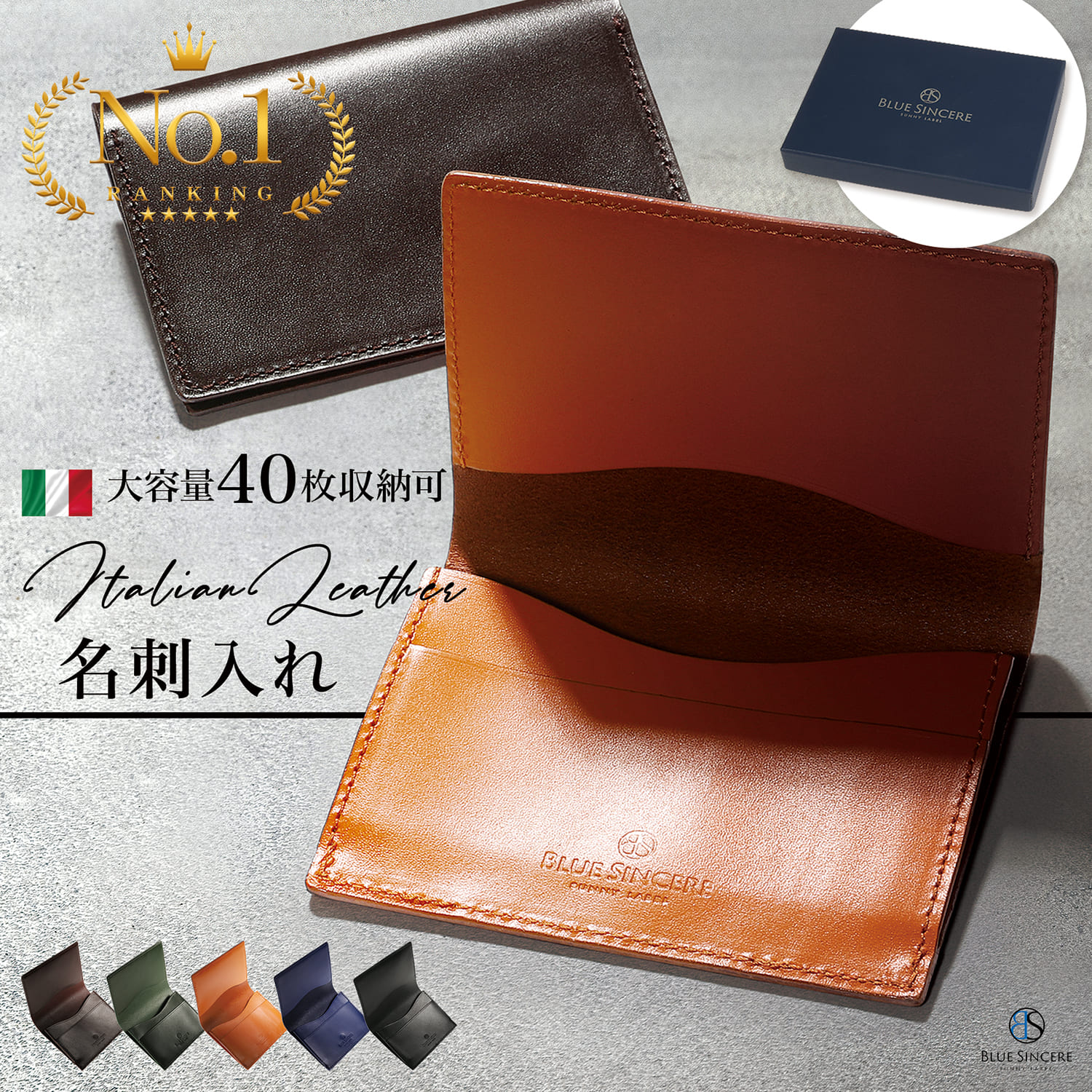 20代~30代におすすめなのがコチラ。革の質感を楽しめる「ブルーシンシア」のアイテム。無駄のないシンプルなデザイン。1cmのスリムボディながらも、名刺40枚を収納可能。高級感のある本革製で、使い勝手もよく評判の良い大人気アイテムです。