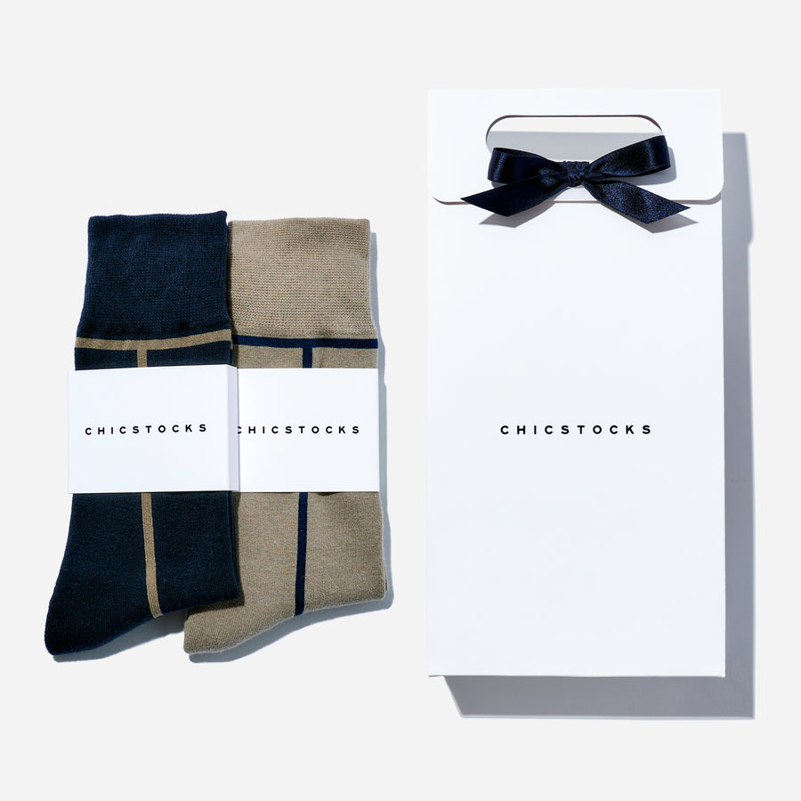 「CHICSTOCKS」のラインソックスは、縦ラインが特徴的なおしゃれアイテム。長めの履き口で圧力を分散し、締め付けが少なくてもずれ落ちにくい工夫が施されているなど見た目だけでなく履き心地や機能性も魅力的。ギフトセットなら、品の良さも感じますね。