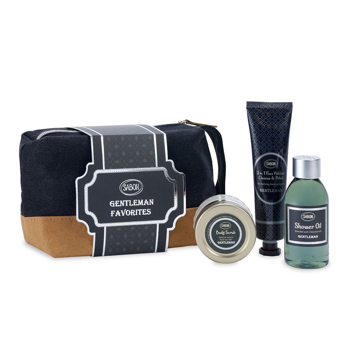 ラグジュアリーボディケアブランド「SABON」の男性向けトラベルセット。シトラスウッディ香る、シャワーオイル・ボディスクラブ・フェイスポリッシャーをシンプルなオリジナルポーチにIN。旅行や出張の多い男性にもきっと喜んでもらえるプレゼントに。