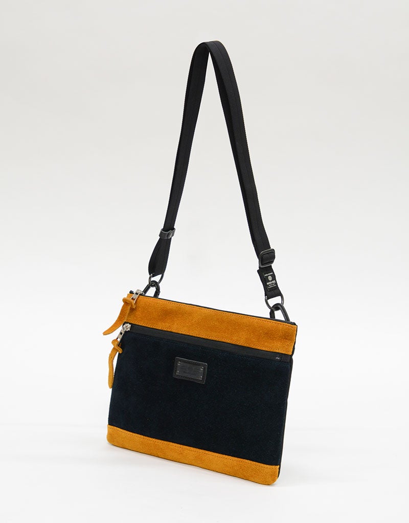 「クロスボディバッグ」は、からだにフィットする使い心地抜群のサコッシュ。防水性のあるナイロン製と、高級感のあるレザーとの切り替えが絶妙なバランスです。