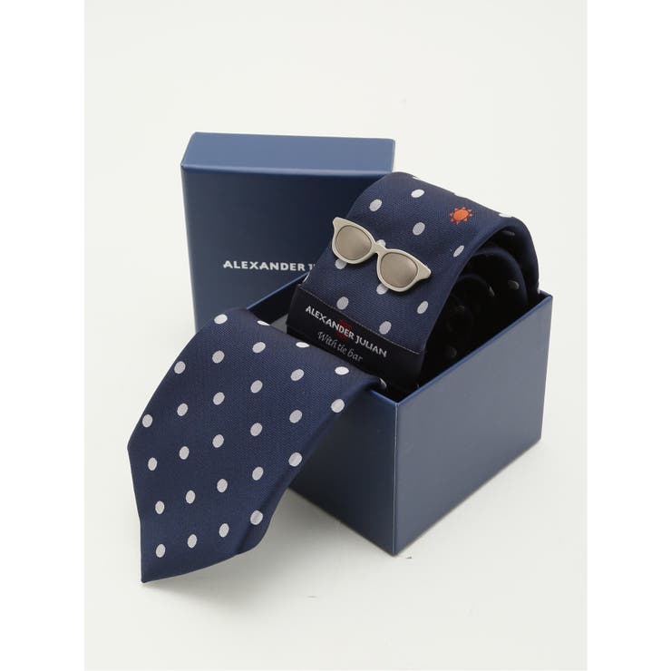 おしゃれに敏感な女子学生からなら、女性目線でハイセンスなネクタイを選んでみましょう。「ALEXANDER JULIAN」のネクタイセットは、他のブランドにはないようなユニークなアイテム。ネクタイピンがサングラスの形をしており、ドットにはワンポイントで1つだけ太陽も。こんなおしゃれなネクタイを先生につけて授業してほしいですね!