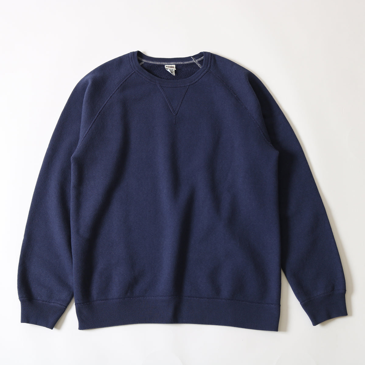 こちらはシンプルな無地スウェット。大正時代から稼働している希少な機器で丁寧に編み込んだ素材を使っています。空気をふんわり含んだ生地は抜群の着心地。大切な人へのギフトにおすすめです。