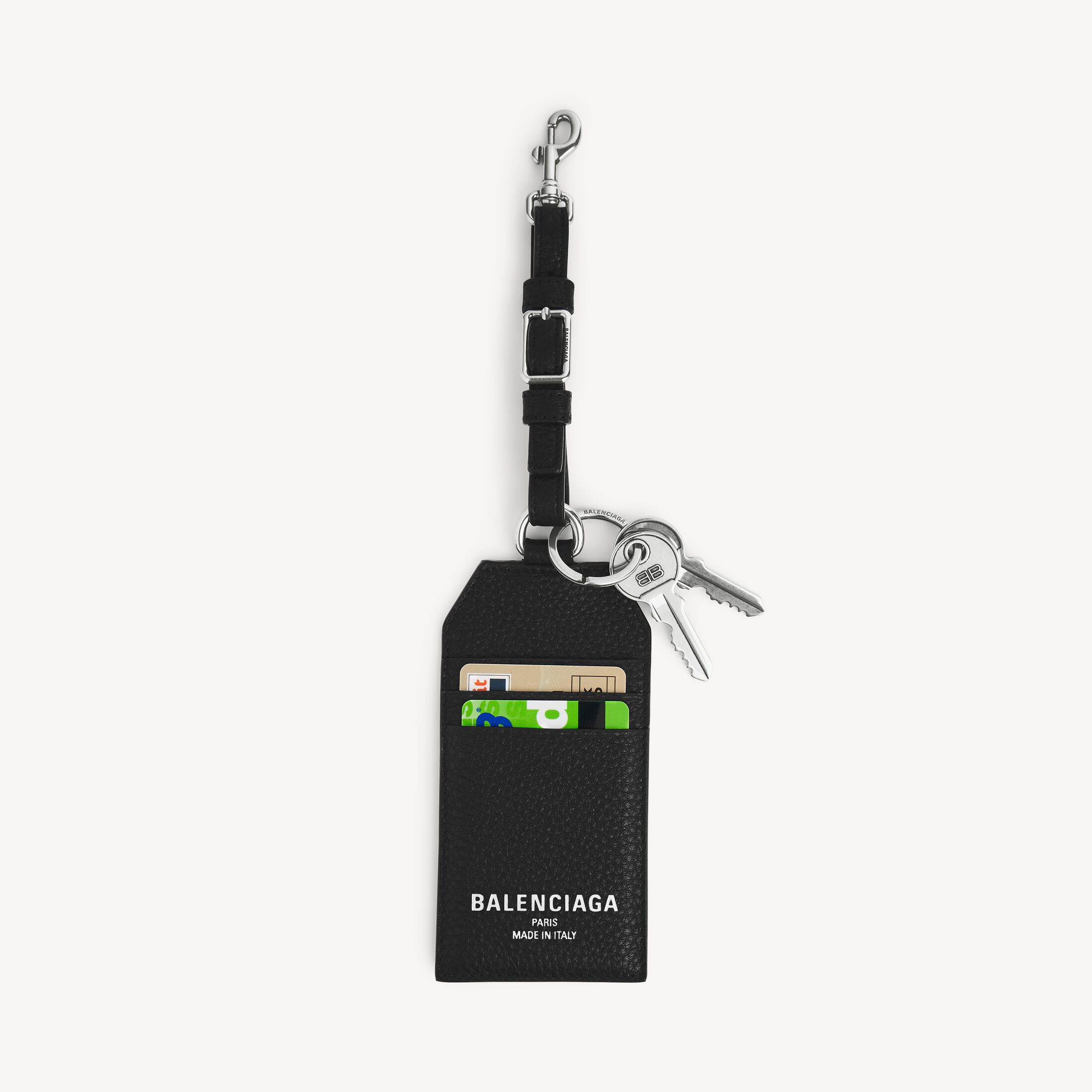 ビジネスバッグに付けて颯爽と街を歩きたいパスケースカードホルダー。ブラックにシルバー、キーチャームにブランドロゴがとってもクール!ロゴプリント入りフェイクカード2枚まで入った、ギフト映え必至のアイテムです。
