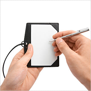 一見シンプルなデザインですが、実はメモ機能も兼ね備えた仕事がはかどるアイテム。IDケースの裏側にはメモ用紙を入れておく事ができるので、先輩からの指示や大切なこともすぐにメモ。付属品としてケースに収納できるペンもついています。