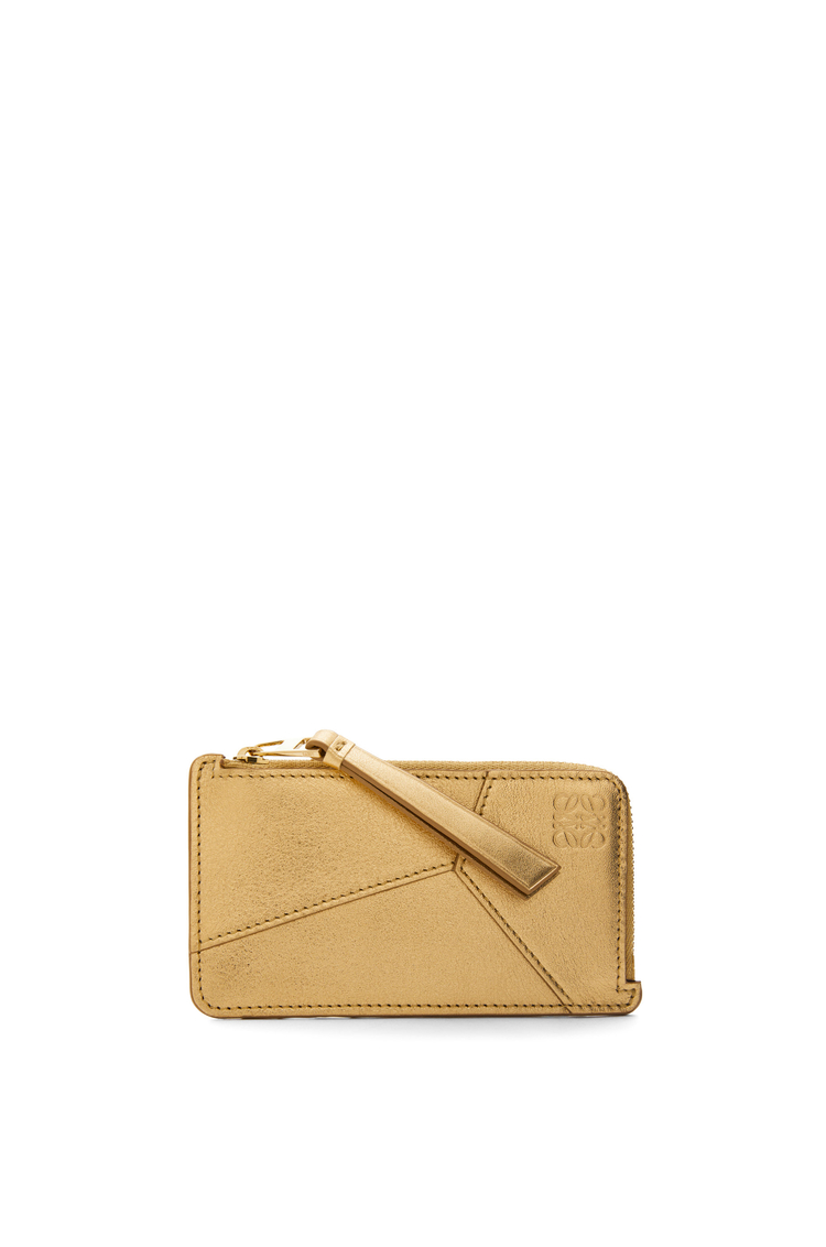 こちらはパスケースとしてだけでなくジッパー仕様のコインケースも装備。メタリックカーフスキンを使用しており、見た目も豪華で華やかな雰囲気。ケース前面のパズルデザインとアナグラムのエンボス加工が、唯一無二の存在感を放っています。