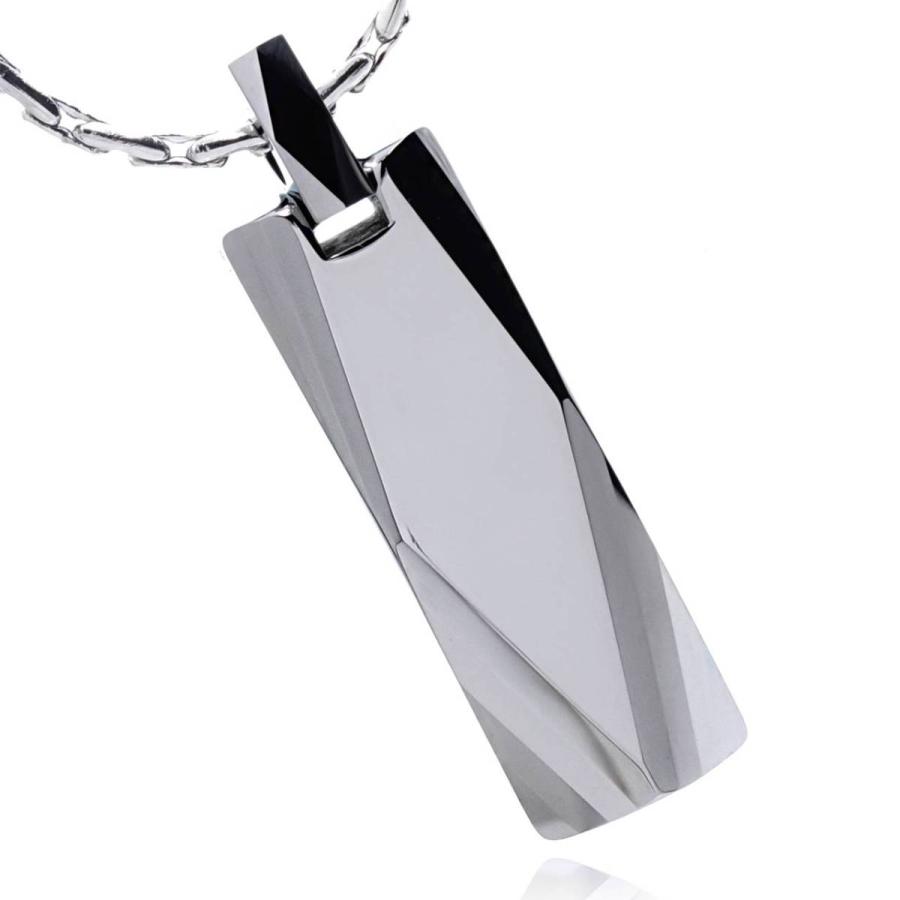 「Napist」のネックレス。男らしい魅力が引き立つボリュームあるペンダントトップ。計算されたカッティングによりタングステンの濃い銀色の、豊かな表情を楽しめます。チェーン部分はサージカルステンレスになっていて、金属アレルギーが心配な男性にもおすすめですよ。